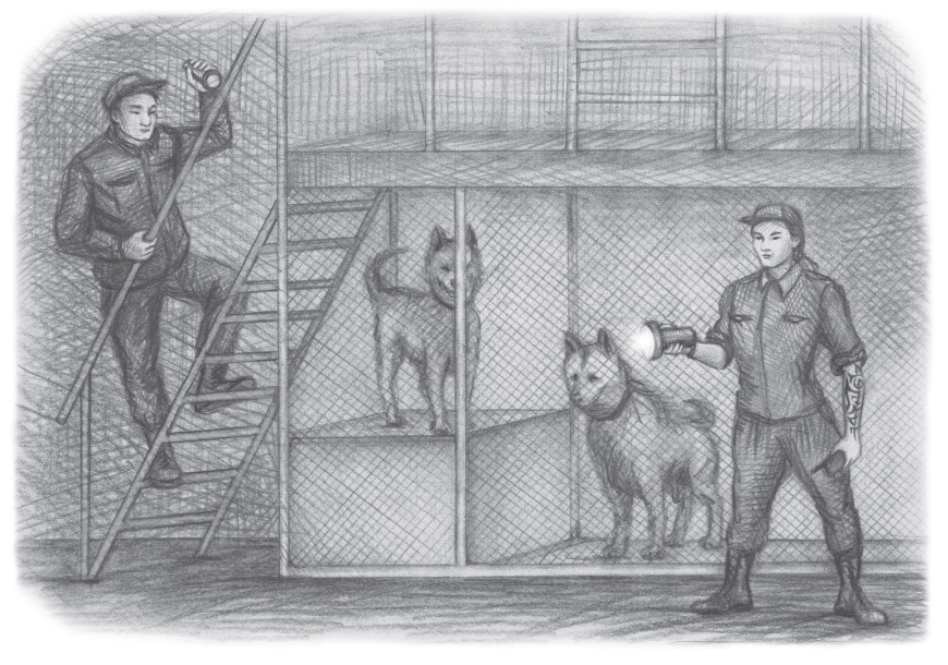 Так же, как в «Печатниках», все мои конвоиры и водитель покинули автозак, и я осталась в нем одна. Резко пахну́ло псиной. Почти вплотную к дверям стояло сооружение наподобие металлических строительных лесов, выкрашенных красной краской. В нижнем ярусе находились клетки с овчарками, которые заливисто лаяли. Всего собак было около десяти.