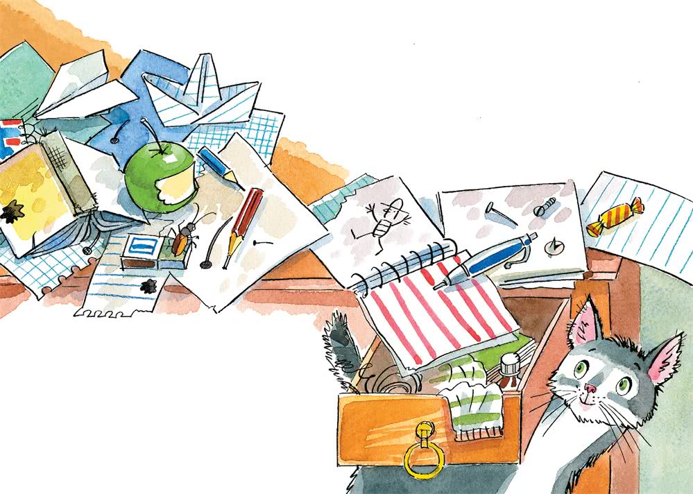 Легко сказать – убери! Я иногда просто удивляюсь, глядя на свой стол. Как много предметов на нём умещается! Тут рваные учебники и тетрадки в четыре листика, ручки, карандаши, линейки. Их, правда, теснят гвозди, шурупы, обрывки проволоки и другие нужные вещи. Вообще я очень люблю гвозди. Они у меня есть всех размеров и разной толщины. А мама почему-то их совсем не любит. Она много раз выбрасывала их, но они снова возвращаются на мой стол, как бумеранги. Мама сердится на меня за то, что я больше люблю гвозди, чем учебники. А кто виноват? Конечно, не я, а учебники. Не надо быть такими скучными.