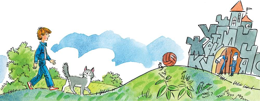 Мне это здорово надоело. Мяч привёл нас в Страну невыученных уроков. Почему же мы должны стоять у её ворот и отвечать на дурацкие вопросы? Я потребовал, чтобы мне немедленно дали ключ отпереть замок. Мяч шевельнулся. Я понял, что действую правильно.