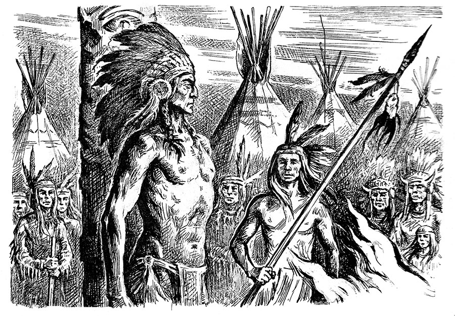 – Замолчи, змей! Вы тайно напали на наш лагерь, когда топор войны не был вырыт! Разве это достойно воинов? Ты подкрался как гадюка, чтобы похитить мальчика и девушку! Ты душитель детей, и это твой подвиг воина?! Один твой вид оскорбителен для всякого смелого человека.