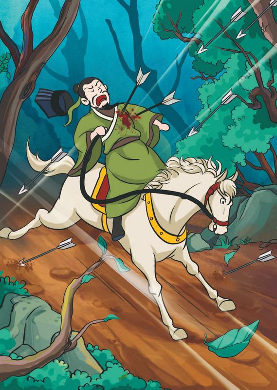 Первая стрела вонзилась в Пан Туна, затем вторая, третья… Он упал с лошади. «Раз мне все равно суждено умереть, то я пожертвую своей жизнью ради моего господина и так смогу сполна отплатить за его доброту!» – решил умирающий Пан Тун.