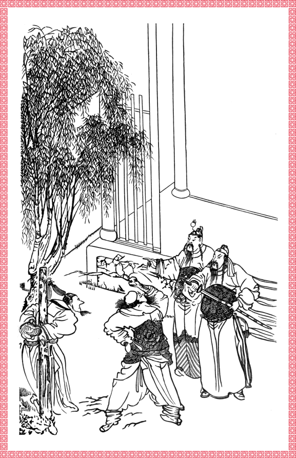 Чжан Фэй пришел в ярость. Он спрыгнул с коня, бросился к воротам, растолкал стражников и ворвался в зал. Инспектор восседал на возвышении, а перед ним на полу лежали связанные чиновники.