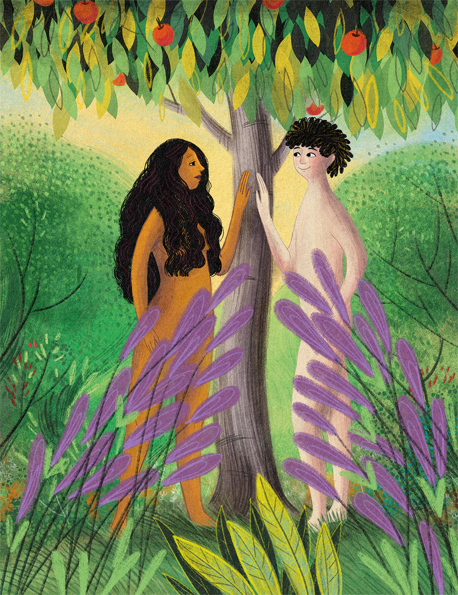 Потом Господь сказал: «Вот кто будет жить на земле!» И планета наполнилась быками, коровами и лошадьми, дикими зверями, пресмыкающимися и насекомыми. Затем Господь сотворил мужчину и женщину – Адама и Еву. Он создал их по своему образу и подобию и сказал им: «Я даю вам всякую траву, которая рождает семя и плод, всякое живое существо, идите и живите на этой земле».