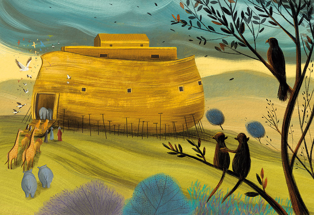 Тогда Господь призвал его и сказал: «Ной, пойди в лес и набери хорошей древесины, попроси помощи у твоих сыновей и сооруди большой ковчег, который сможет ходить по морю много дней. На этом ковчеге ты спасёшься от потопа, который накроет землю».