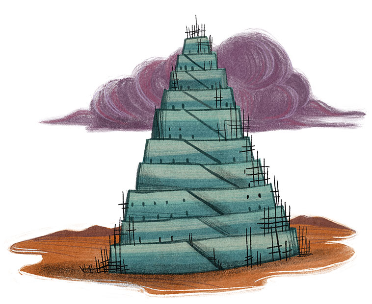 Они тут же принялись за работу и начали строить город с высоченной башней, но Богу не нравилась их гордыня, и он сказал: