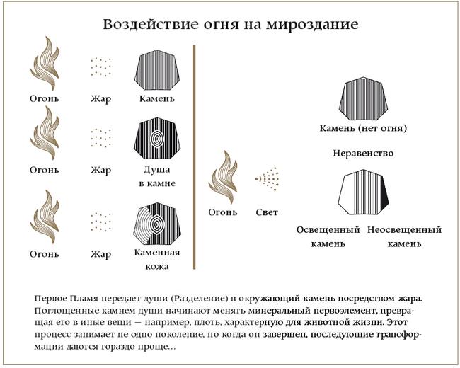 Жизнь, как и огонь, многообразна, у нее множество стремлений и вариаций – такова уж хаотичная природа Разделения. Но на поведение живых существ влияет и сознание, которое может быть как рациональным, так и иррациональным по собственному разумению; в этом можно убедиться, посмотрев на персонажей на нашем пути. Мы можем иметь общее представление, как будет действовать человек, но что конкретно он будет делать и почему – нет: этот порядок хаотичен. Тем не менее душа сохраняет определенные черты и наклонности, и эти качества по своей сути накладывают на действия живых существ ограничения или, по крайней мере, создают препятствия. И не только они.