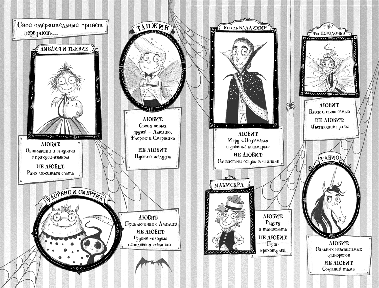 Отец Танжина, король Владимир, был так опечален исчезновением жены, что полностью забросил управление государством и воспитание сына и годы напролёт проводил, разыскивая Погодочку. А это, в свою очередь, привело к тому, что Танжин превратился в довольно противного избалованного выскочку (вот почему он считал, что украсть беднягу Тыквика было в порядке вещей), хотя по происхождению он был наполовину вампир, наполовину фей. Этот великий секрет Танжина напугал бы большую часть созданий тьмы. Но Амелия обнаружила, что создания света не были такими уж пугающими, как говорилось всюду. Оказалось, что феи при встрече с вампирами не вырывают у них клыки, а единороги не умеют стрелять радугами из задней части туловища.