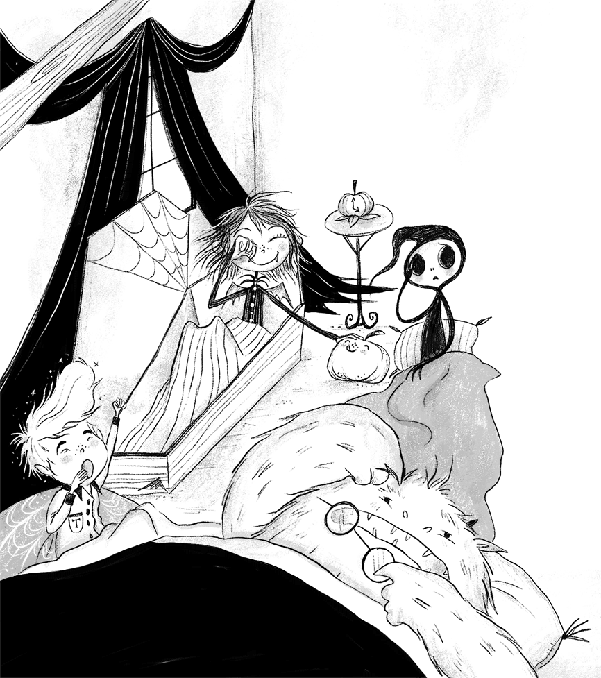 Амелия Клык потянулась и выкарабкалась из своего гроба. Тыквик, её любимая ручная тыква, скакал вокруг и восторженно лизал всех, кто попадался на пути.