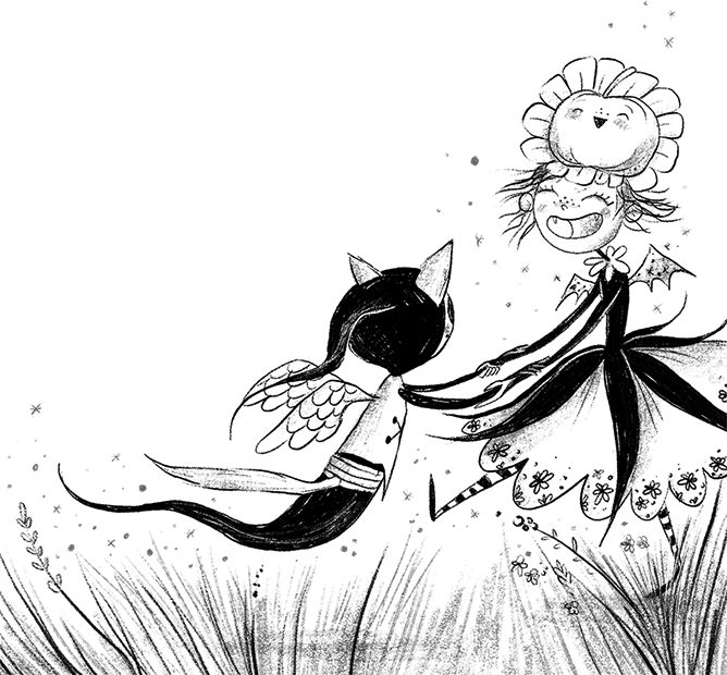 – НУ ПЧМУ Я ДОЛЖНА БЫТЬ ЕДНОРОГОМ? – возмутилась Флоренс, поправляя на лбу рог, пока Смертик озадаченно рассматривал свой хвост котёнка-ангела.
