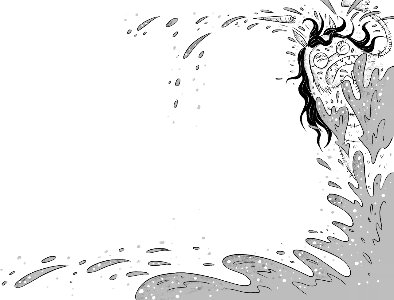 Внезапно раздался ПЛЮХ, и огромная волна окатила её с головы до ног так, что даже сбила единорожий рог.