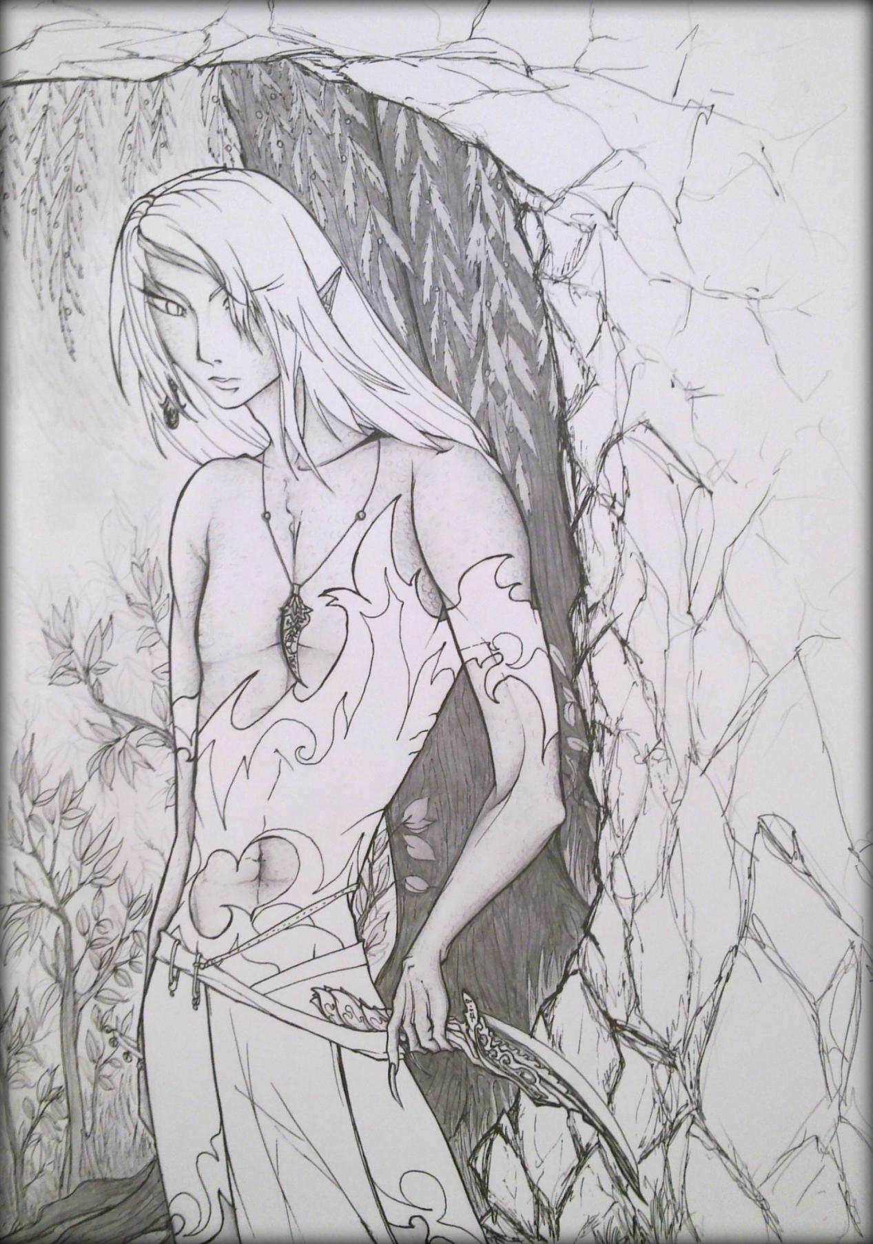 Не долго размышляя, я подошёл обратно к юноше и ткнул в его сторону пальцем: «Видишь тот пояс на этой накидке? Воот. Расстегни. Потом помоги с рубашкой, там такая завязочка должна быть…» – Я изобразил какая. – «Её нужно развязать. Что ты смотришь? Приступай.» – Делаю приглашающий жест рукой.