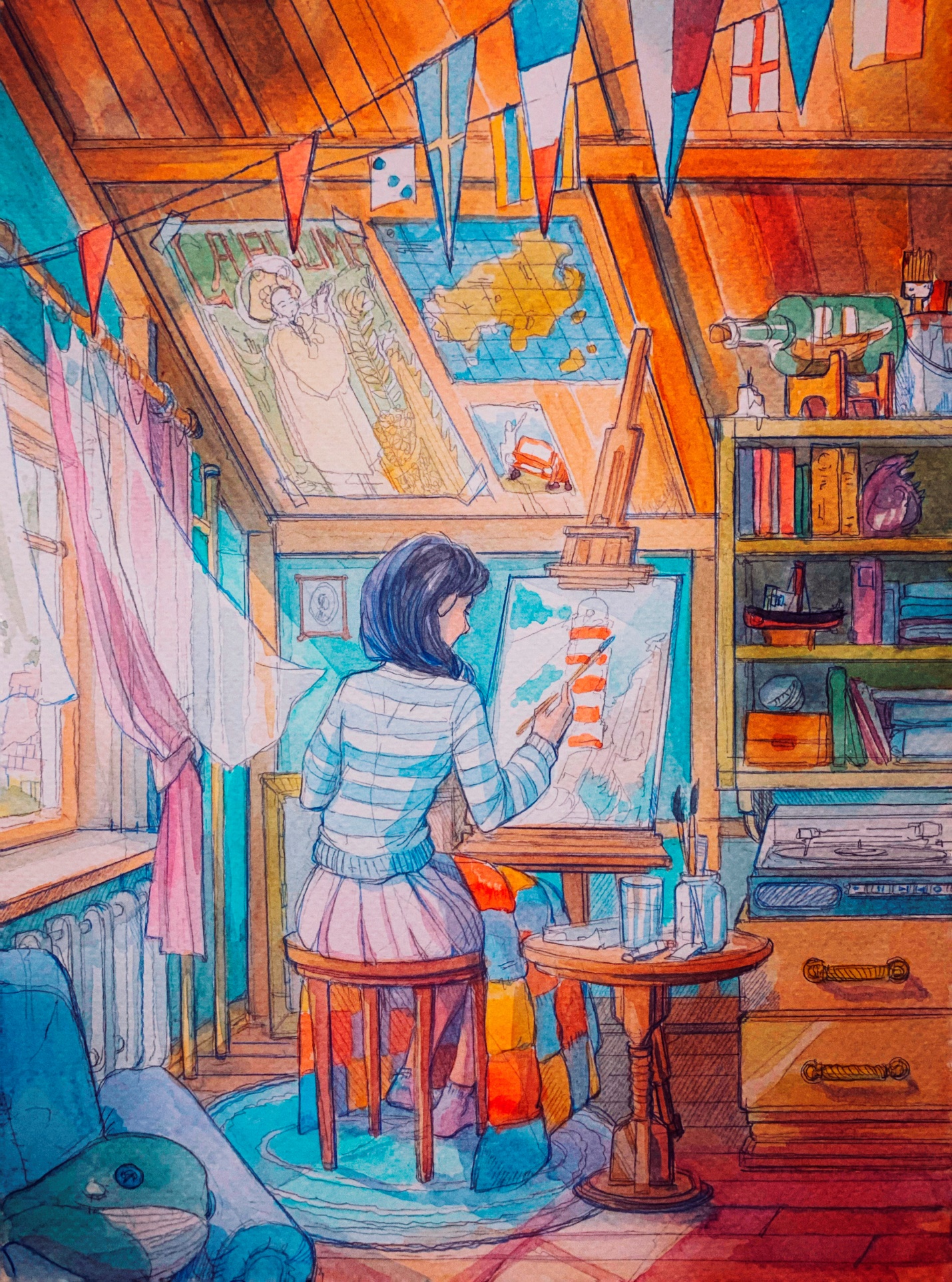 Людям нравились мои простые рисунки, и очень скоро отец смог открыть небольшую лавку. Приезжие часто заглядывали туда и увозили пылающий закат или потертую бурями шхуну в память о своем визите в наш городок. А у нас появились деньги на дальние поездки и новые впечатления.