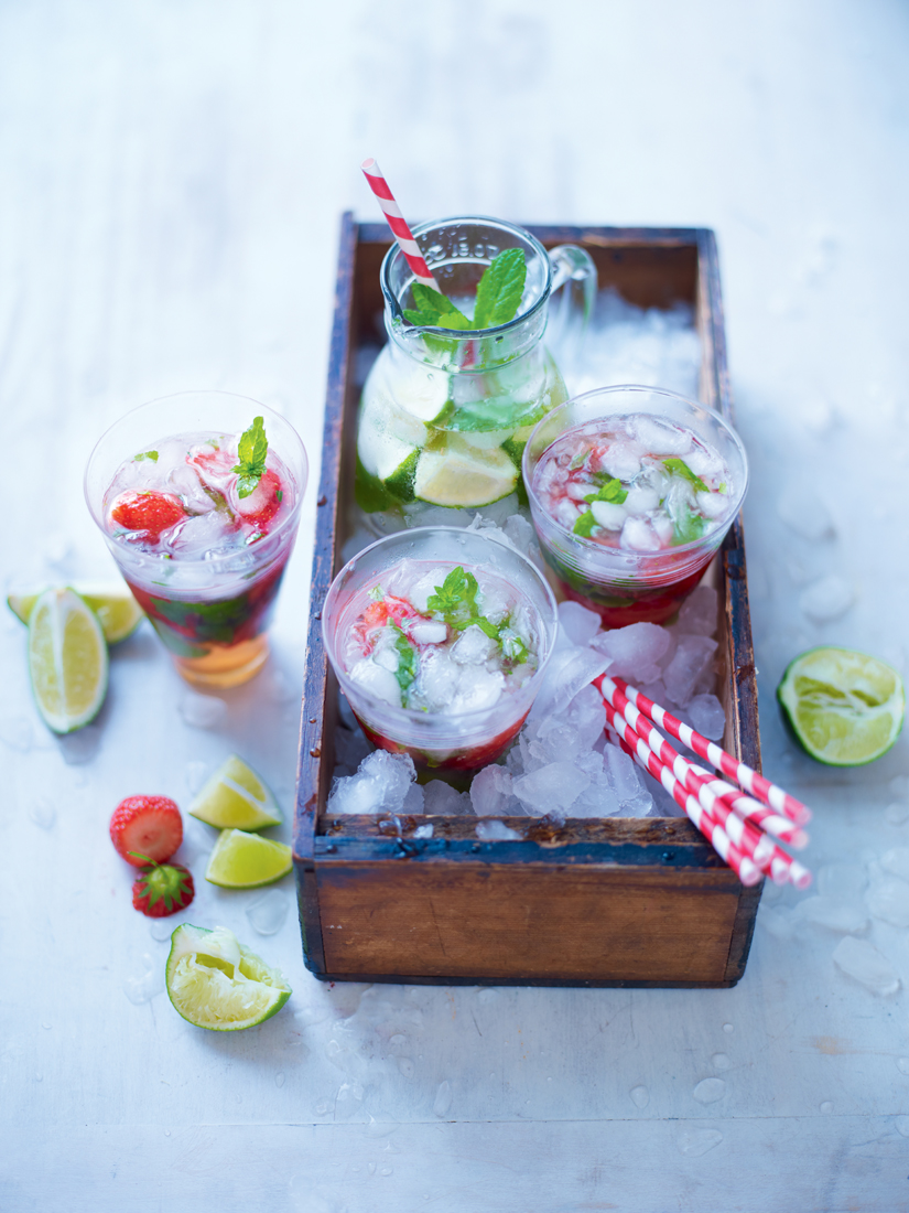 Ahh, mojitos. My Achilles heel, for sure. Whether they be alcoholic or virgin, I love these sugary South American drinks. Strawberries can be substituted with other fruit, such as blackberries or raspberries, and the rum replaced with extra soda water or lemonade for a non-alcoholic version.