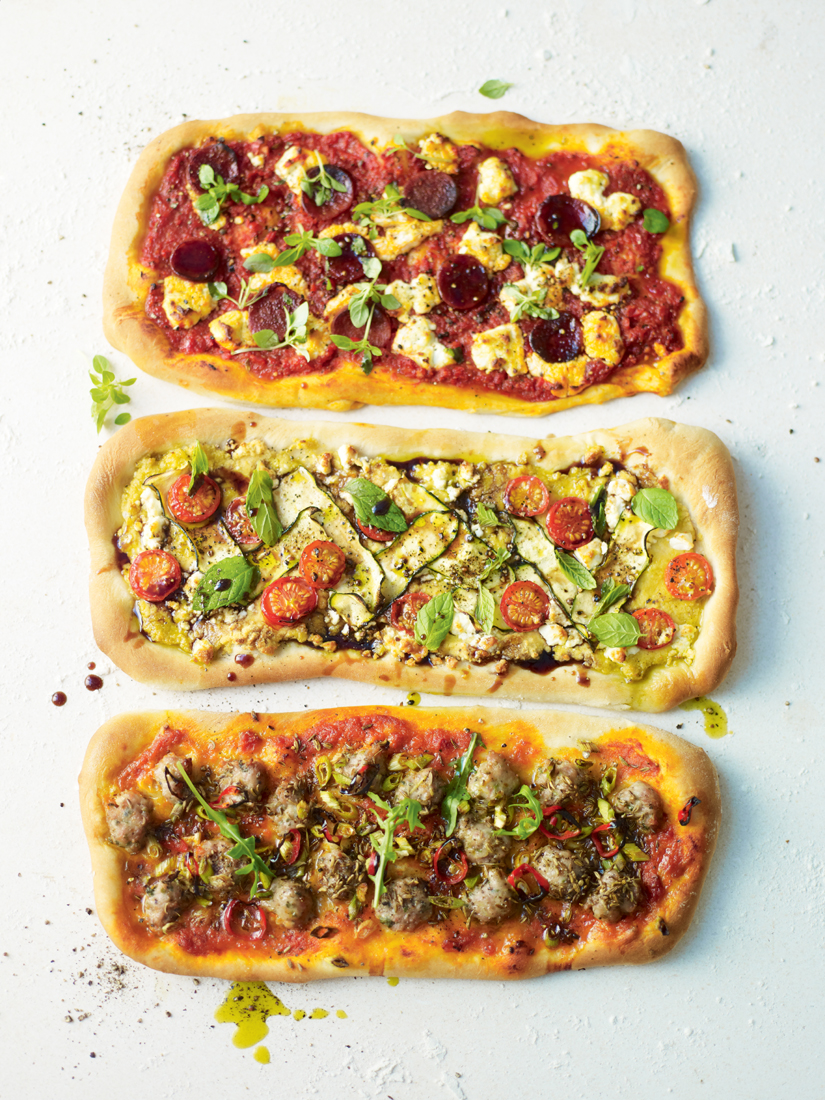 My first experience of soup was the rich, red tomato variety, poured straight from a can, but as I learned more about food, I began to see that there was so much more to soup than that. My idea of a soup is something jam-packed full of taste and texture, with layers and layers of flavour, which can be achieved in a reasonable time span for maximum impact. I love to make large batches of soup and pour some into a flask for part of my laptop lunch. Of course, other light bites such as Aussie Sweetcorn Breakfast Fritters are a must when a small meal is desired or as a precursor to a larger one. I wasn’t sure where on earth to put my Pizza Expressed Three Ways, and so placed it in this chapter for a pleasing light bite.