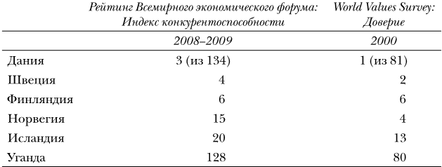 И наоборот, Уганда находится в самом низу и по индексу конкурентоспособности, и по индексу доверия. Она, как и Гаити, относится к числу стран, где сохраняются традиционные религии, включающие в себя колдовство, нередко существуя в тандеме с христианством или, как в Уганде, с исламом.