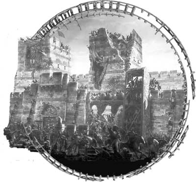 Но с каждым попаданием огромные ядра пробивали новые и новые бреши. Казалось, будто какой-то невидимый гигант откусывает один кусок стены за другим. Император представил себе, как взвиваются в воздух осколки, как толпы солдат и горожан спешат к очередной ране в стене сквозь тучи пыли, подобно бесстрашным муравьям. Люди бросали в проломы все, что было под рукой: мусор из развалин, мешки с землей, бесценные персидские ковры… Он даже представил себе, как облако пыли, пронизанное закатными лучами солнца, золотистым саваном неторопливо окутывает Константинополь.