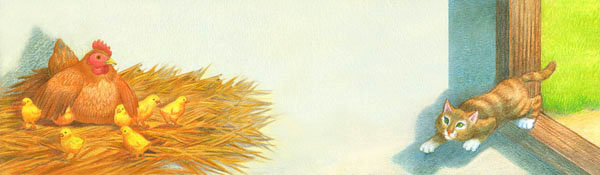 – Мурка, не смей охотиться на цыплят, лучше иди ловить мышей! – пригрозила пальцем маленькая хозяйка.
