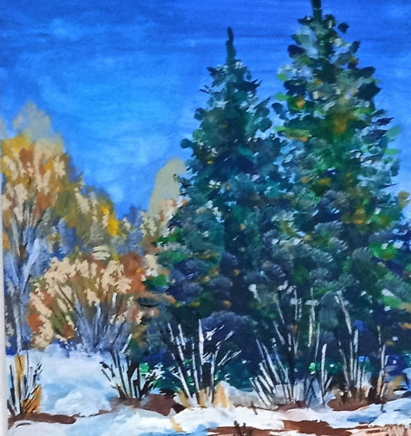 Я нарисую себе зиму,Когда за окнами ненастье.Когда все серо и уныло,И все вокруг однообразно.Когда деревья свои ветви,К земле печально наклонили.Темнеют лужи на дорогах,И люди все домой спешили.Я нарисую себе зимуС пушистым белым-белым снегом!С искристым инеем на окнахИ ярким синим-синим небом!Чтоб все сияло и искрилось!Уходит прочь пусть непогода!Я нарисую себе зимуИ буду ждать ее прихода.