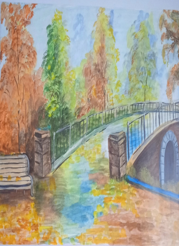 В парке осеннем тишина и покой.Листья усыпали тропы давно.Здесь не услышишь ты шум городской.Время, как в сказке, застыло чудно.Ветер играет ветвями деревьевИ, напевая, срывает листву.Листья, как бабочки, кружатся в танце,Падая тихо в седую траву.К осени травы давно поседели.И яркой зелени уж не видать.Листья ж нарядные платья одели.Осень ведь знает, кого награждать.Грозди рябины, словно рубины.Осень дарует нам клады свои,Чтобы смягчить чуть наши кручиныВ память ушедшему лету. Увы…Но ведь с природой никак не поспоришь.Все в ней по плану идет уж века.Смена времен неизбежно приходитИ повторяться будет всегда.Яркими красками все расцветила,Щедро украсив деревьев листву.Солнце лучами их осветило,Парк превратив в сказку нам наяву.Будем же рады, что осень настала!От красоты сил нет глаз отвести!И будем счастливы, что в этом мире,Нам посчастливилось жизнь обрести!ОСЕНЬ ЗОЛОТАЯ