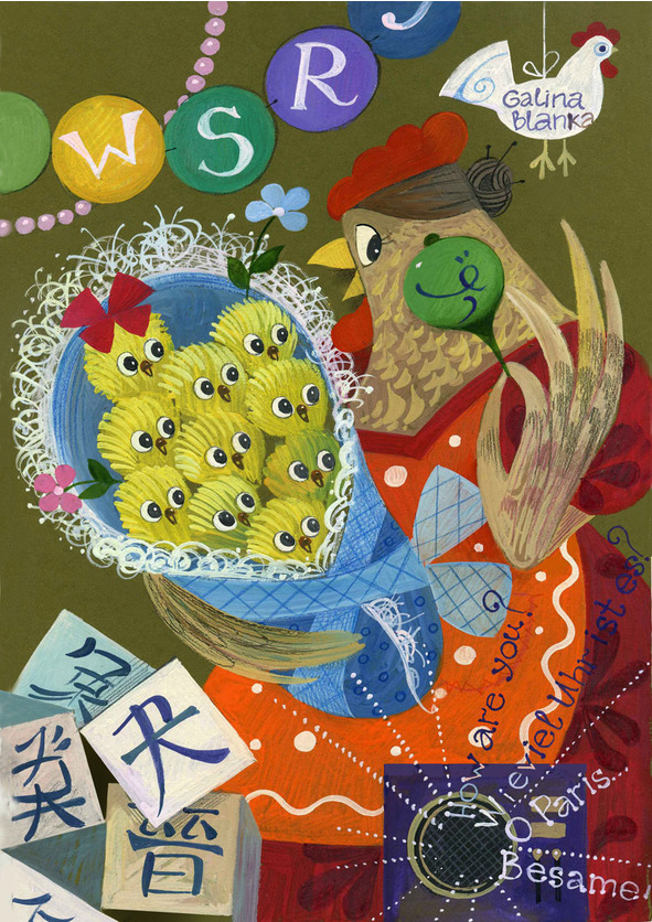 В одном курятнике у Курицы – наседкиК началу мая вылупились детки —Все жёлтенькие милые комочки,Их просто обожала мама – квочка.Она их согревала в два крыла,Не ела, не дышала, не спала.Когда комочки эти подросли,Они такое курам понесли!!!Одни пищали только по – немецки,Другие выводили по – турецки,Кто по – английски, кто – то по – французски,А квочка только охала по – русски:«Какая удивительная речь!Она способна каждого увлечь!»Ей подпевали остальные куры:«Какие умницы они, а мы – то – дуры!Живём в курятнике, несёмся на морозеИ роемся не в книжках, а в навозе».Однажды в тех краях Ворона пролетала,Она Цыплёнка цап! – и вмиг поймала.Тот вырывался из когтей опасных,Кричал и звал на помощь, но напрасно —Ни слова куры не перевелиИ бедного Цыплёнка не спасли.***Порой мамаши поощряют сами,Что дети тешатся чужими словесами.Совет цыплёнку и ученику:Учись сперва родному языку.Ковалевская Любовь, 13 лет