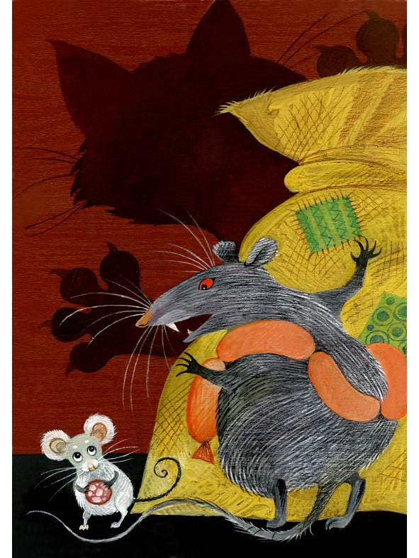 В амбаре, где крупа лежала,Случайно Крыса Мышку повстречала.Понятно, никому не нужен конкурент,И Крыса Мышку выгнала в момент,Успев еще вдогонку наорать.А после жадно стала крупы пожирать,И так обжорством увлеклась воровка,Что не заметила, как ожила кладовка.Вдруг на пороге заурчала Киса:«А что ты делаешь в амбаре, Крыса?»Со страху Крыса бросилась к дыре,Чтоб скрыться под корягой во дворе,Но вот дыра – то стала ей мала!Застряла Крыса – жадность подвела.***Молва права: негоже воровать,Но меру даже в этом надо знатьКовалевская Любовь, 13 лет