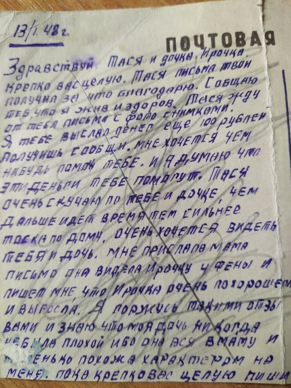 И молодому поколению и моим внукам говорю: «Не будьте Иванами, не помнящими родства! Знать историю своей семьи и своей страны – ваш долг перед нами! Мы росли без отцов, потому что они сражались на фронтах и многие не вернулись с войны. Многим из моих школьных товарищей, с которыми я училась в войну, не удалось окончить даже 7 классов – надо было работать, помогать матерям. Мальчишки заменили отцов, тем более, что после войны учёба в 8-9-10-х классах была платной, плата, видимо, была большой, потому что в 10 классе, где я училась, нас было всего 13 человек, и 10 класс был всего один в посёлке. Так что, видимо, мне выпало счастье в то тяжелое, военное и послевоенное время: я получила образование: сначала среднее – в школе, потом и высшее – в институте.