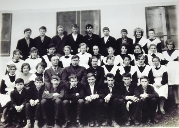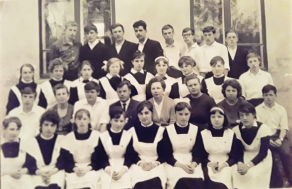 Выпуск 1966 г. «старой» средней школы №11. Во втором ряду учителя: Н. В. Финарова, Е. А. Лебедев