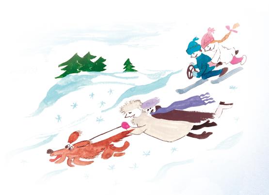 Собирались мы с сестройС горки покататься.Оглянулись —Вся родня стала собираться.Мама ждёт в пуховике,Папа в куртке – налегке,Надевает дед пальто,Бабушка несёт манто…Даже рыжий пёс ЗвонокВ пасти держит поводок!– Вы куда? На снегокатеМесто только мне и Кате!– Ничего, Катюша, Вадик,Мы за вами съедем сзади!Усмехаются соседи,Удивляются друзья:С горки, словно на ракете,Едет вся моя семья!Впереди, подобно ветру,Пролетает пёс Звонок.Далее, всего лишь в метре(Кто бы догадаться мог?!)Мама с бабушкой взлетают,Не теряя поводок!Дальше мы с сестрою КатейНа любимом снегокате, ну и дед,А следом – батя!Мы летим с высокой кручи!ААААААА-х! Захватывает дух!Хорошо бы сбиться в кучу —Снег сегодня словно пух!