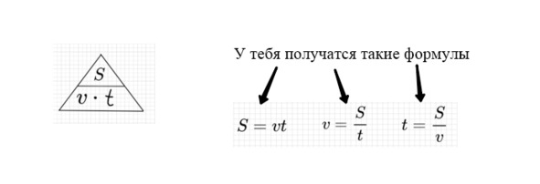 – если ты решаешь задачу на определение скорости, возьми этот треугольник
