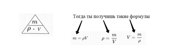 – если ты решаешь задачу на расчет плотности или массы, возьми следующий треугольник