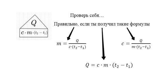 – а с количеством тепла, посложнее, но принцип записи будет таким же. Закрываем неизвестную величину пальцем и списываем то, что осталось не закрыто.