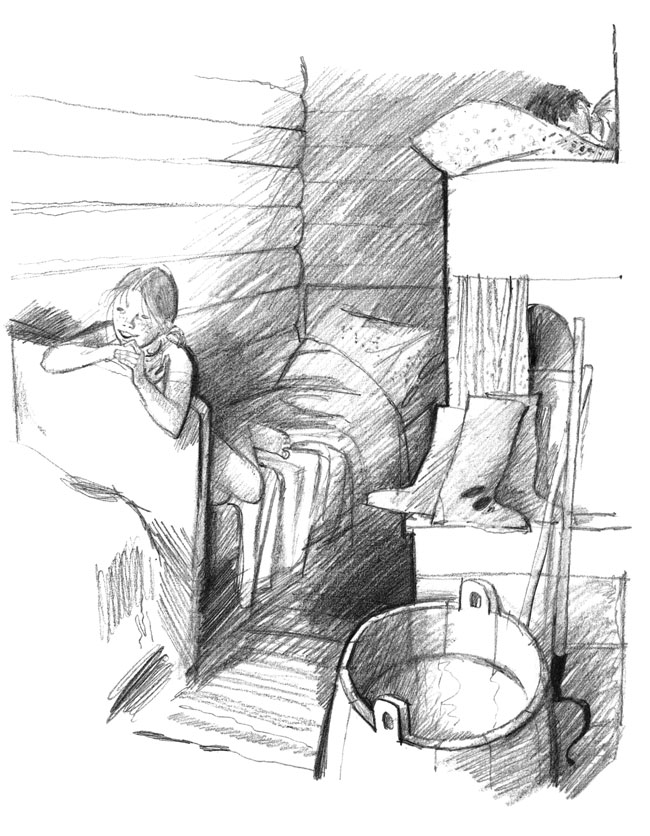 Тем временем мать вытащила из печки все горшки и кринки, настелила всюду свежей соломы – и в самой печке, и на шестке, и на полу возле печки. Налила в таз горячей воды, сунула в него берёзовый веник и поставила в печку.
