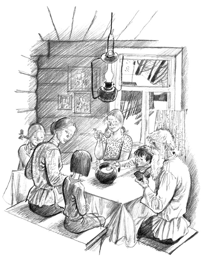 Валентинка с сожалением вылезла из-под тулупа. Она умылась над кадкой и тоже подошла к чугуну.