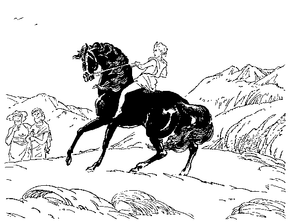 Братья из Аргоса тем временем подошли к большой глубокой реке. Услышав погоню, они бросились в реку и переплыли ее. И, едва успев выйти на другой берег, они увидели всадников, которые гнались за ними. Всадники скакали, не щадя коней. Сейчас они будут у реки, переплывут ее, и бедным пастухам уже не спастись!