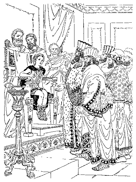 Послы вымылись с дороги, отдохнули. И когда они были готовы к разговору, Александр, одетый в свое самое богатое платье, принял их со всем достоинством царского сына.