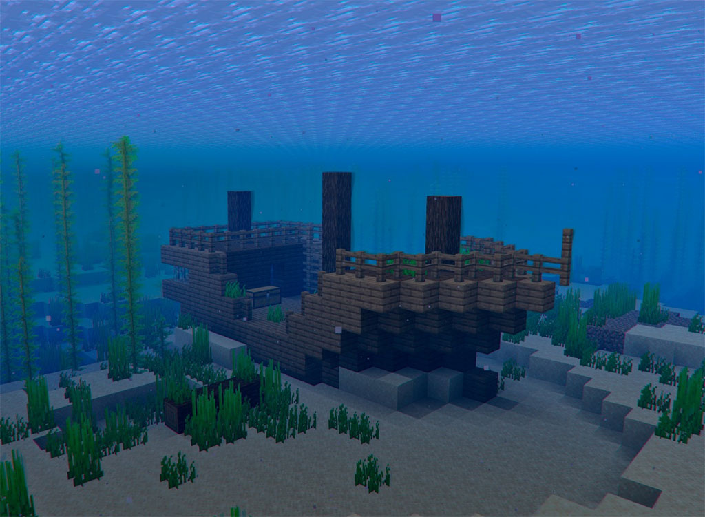 Ребята со мной согласились. Дрю решил повыпендриваться и попасть в бассейн через шлюз. Все остальные направились наверх к тайному проходу в нашей с Кумбой каюте. Когда мы спустились к бассейну, Дрю уже сидел на бортике, свесив ноги. Марти переоделся и согласился поучаствовать в нашем эксперименте. Дрю протянул ему скафандр, а Терра засекла время. Марти погрузился под воду. Не прошло и минуты, кок он пулей оттуда вылетел. Дрю в свою очередь лег на дно, даже без скафандра, и находился там более трех минут, пока Марти просто не выдернул его наверх. Понятно, он переживал за друга. Стало очевидно, что Дрю мог находиться под водой сколь угодно долго без вреда для здоровья, прямо человек-амфибия. Ни Марти, никто другой из нас такими возможностями не обладал. И, кстати, зелье дыхания под водой не действовало не только на Дрю, но и на всех нас. Наверняка надо было выпить сразу четыре бутылочки, которых у нас просто не было. В общем, Дрю мог обследовать затонувший корабль исключительно водиночку. Нам же оставалось только дожидаться его внутри куба.
