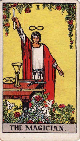 Путь от сфиры Кетер к Бина (здесь и далее приводятся соответствия циннарот согласно моему индивидуальному маршруту восхождения по Древу Жизни, подробнее в Приложении). Идея (шут, символ бесконечности над головой) нисходит и обретает плоть, начинается движение и зарождение в материи. Малое повторяет большое, как вечный и неделимый Абсолют должен был пасть в физическое проявление, надев на себя ограничения и омрачения, чтобы начать использовать слово и закон для творения материи из энергии, плотное из тонкого, так Маг является следующей ступенью после нулевого пустого Дурака.