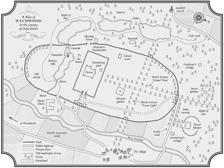 Not so here at Wychwood. My task is to create an Eden encompassing the house, so that the garden will be only the innermost chamber of an enclosure so spacious that, for one living within it, the outside world, with its shocks and annoyances, will be but a memory. Other great gentlemen may have their flocks of sheep, their herds of deer, but, should they wish to control those creatures’ movements, a thorny hedge or palisade of wattle suffices. Lord Woldingham’s creatures will live confined within an impassable barricade. As for human visitors, they will come and go only through the four gates, over which the lodge-keepers will keep vigil.