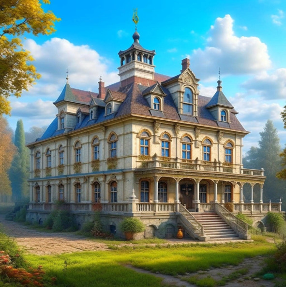 Двухэтажный каменный особняк графа Осинина напоминал роскошный дворец в миниатюре: с колоннадами и длинным балконом, окаймляющим жилище с трёх сторон. На фронтоне (верхней части главного входа) красовался вензель – замысловато переплетенные инициалы далёкого предка. Крышу венчали бельведеры – надстройки над зданием, откуда можно было любоваться живописными видами окрестности. Сквозь усадьбу тянулась липовая аллея с вековыми стройными деревьями. Въезд к парадному входу был оформлен в виде арки, украшенной скульптурным изображением лошадей. На вершине свода возвышался фамильный герб: в красном поле бегущая белая лошадь с золотыми подковами и чёрной подпругой. Перед домом раскинулся партер – открытая часть парка с дорожками, посыпанными разноцветной галькой. В тенистых аллеях прятались каменные беседки с белыми скамьями и мраморными статуями. Ухоженный парк со смешанными растениями хорошо уживался с фруктовым садом, где дружными семействами росли вишнёвые, сливовые, грушёвые, яблоневые деревья. На задворках деловито разместились хозяйственные постройки, конюшни, псарни, бани… И если сердцем этого райского уголка был дом, то душой – старинная часовня. Один из прадедов графа, приняв православную веру, переделал католическую капеллу – родовую усыпальницу в христианский храм.
