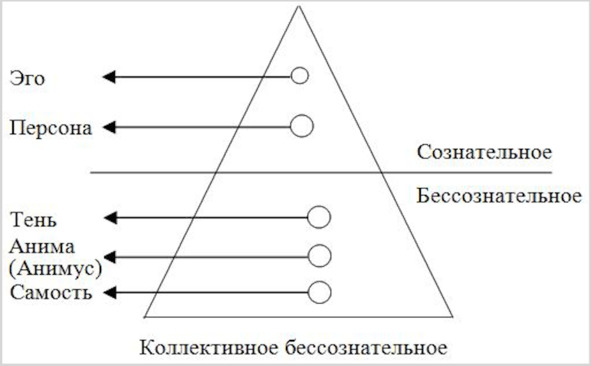 К. Г. ЮнгСогласно юнгианской аналитической психологии, развитие личности основано на взаимодействии пяти основных архетипических фигур. С их помощью осуществляется связь сознания и бессознательного.