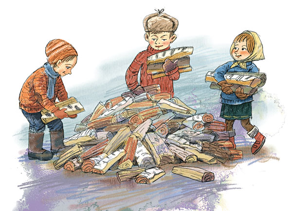– Наденьте свитеры, мы будем носить дрова.