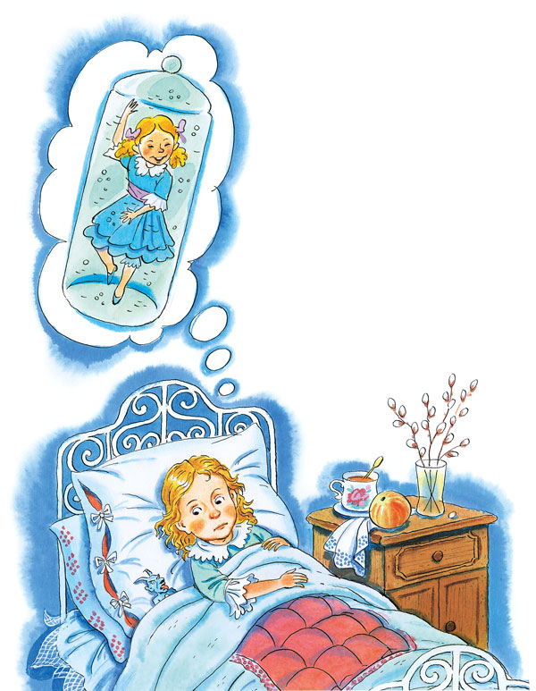 А вечером меня уложили в постель, дали лекарства и закрыли тепло, очень тепло, но по спине бегал холодок, и я знала, что когда уйдут большие, я слезу с кровати, найду чёртову баночку, влезу в неё и буду петь песенку про «день-дребедень» и кружиться всю жизнь, всю бесконечную жизнь буду кружиться.