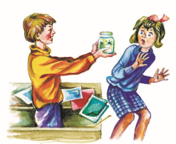 Рядом с Андрюшей сидела маленькая худенькая девочка Ася. То, что она была маленькая и слабенькая, ещё можно было простить, но то, что Ася была труслива, – с этим Андрюша никак не мог примириться. Асю можно было испугать, сделав ей страшные глаза. Она боялась каждой встречной собачонки, убегала от гусей. Даже муравьи и те её страшили.