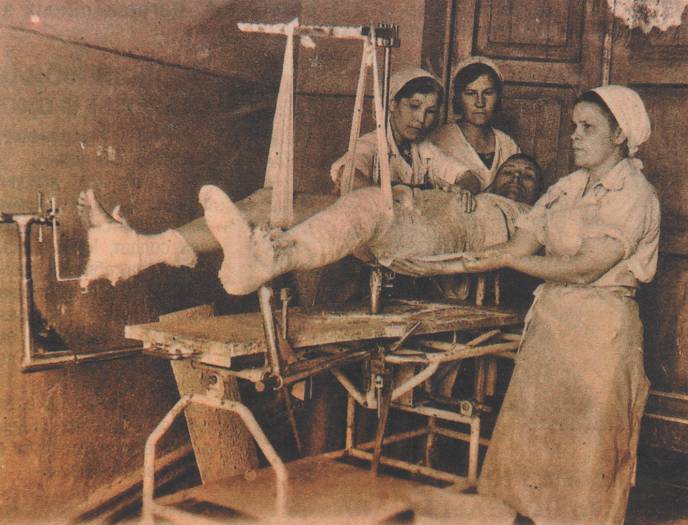 Ортопедический стол для наложения кокситной гипсовой повязки.