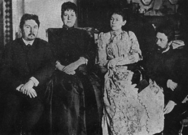 В гостях у Симановских. Слева направо: Н. П. Симановский, Е. О. Шумова-Симановская, Н. О. Зибер-Шумова, художник Н. А. Ярошенко.