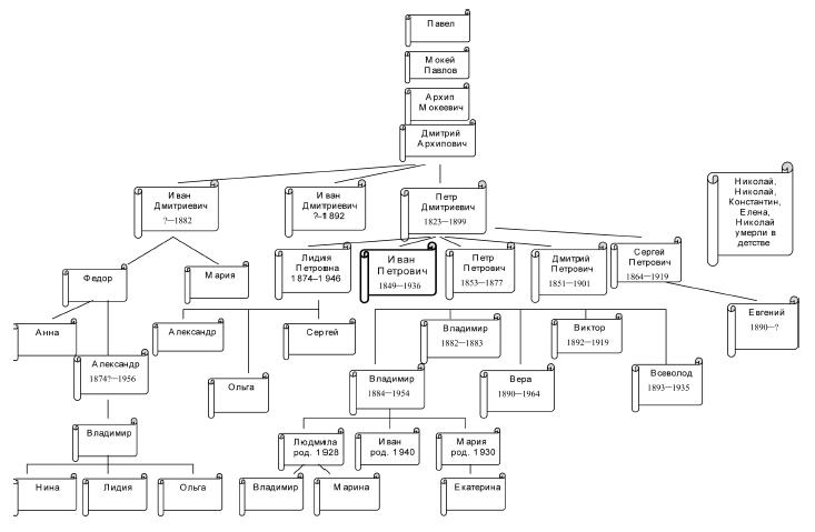 Родословная Ивана Петровича Павлова ей после смерти братьев старом разваливающемся доме. Конечно, никакой прислуги. Пришлось делать все самой. У нее была корова, и я видел часто, как она целыми днями пасла ее на окраине города. Она имела, вероятно, некоторое образование. Где она его получила – не знаю.