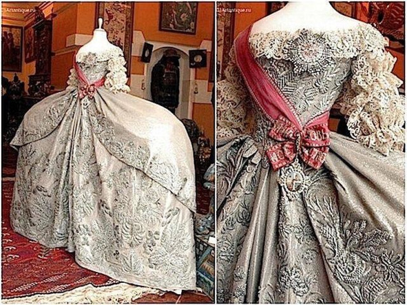 Свадебное платье великой княгини Екатерины Алексеевны. Ее талия меньше 60 см. Венчание произошло 21 августа 1745 года в Казанской церкви (Санкт-Петербург)