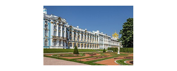 Царское Село. Екатерининский дворец. Строительство началось при Екатерине Алексеевне, супруге Петра I, перестроен при их дочери императрице Елизавете Петровне в 1752—1756 годах архитектором Франческо Бартоломео Растрелли (1700—1771)