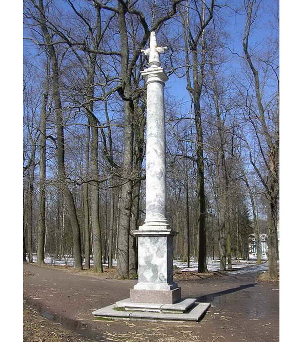 Она выполнена из серо—голубого мрамора, добытого в Олонце (Карелия). Колонна напоминает о битве в Морее близ Чертова моста. Имя Ивана Абрамовича Ганнибала, взявшего крепость Наварин, увековечено на памятной доске этой колонны. В память своего двоюродного деда Александр Сергеевич написал стихи (1830), где назвал его «Наваринским Ганнибалом».