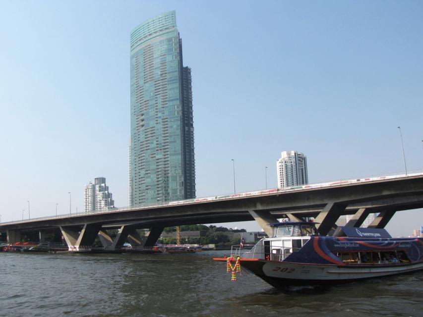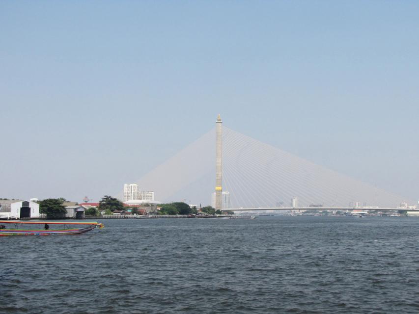 Река Чао Прайя. Мост Таксин. Рядом с ним находится станция наземного метро.